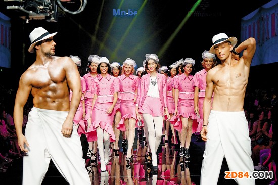 發(fā)布會謝幕的時候,兩名身穿白色長褲、裸露上身的“鮮肉”外國男模的出現(xiàn),可以說驚艷全場,而一群身穿艷粉色套裝的女模緊隨其后,則有Dolce & Gabbana 后來被人津津樂道的2014春秀華麗金屬色秀場的風(fēng)范。設(shè)計師林子琪最后身著艷粉色曳地禮服登場,成為了全場矚目的焦點(diǎn)。